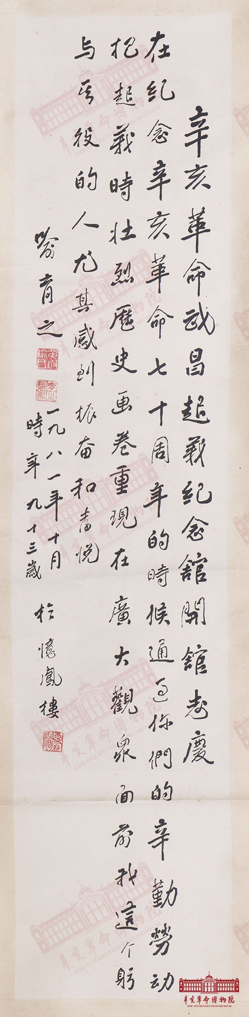 名稱:喻育之為辛亥革命武昌起義紀念館開館志慶題詞詞軸