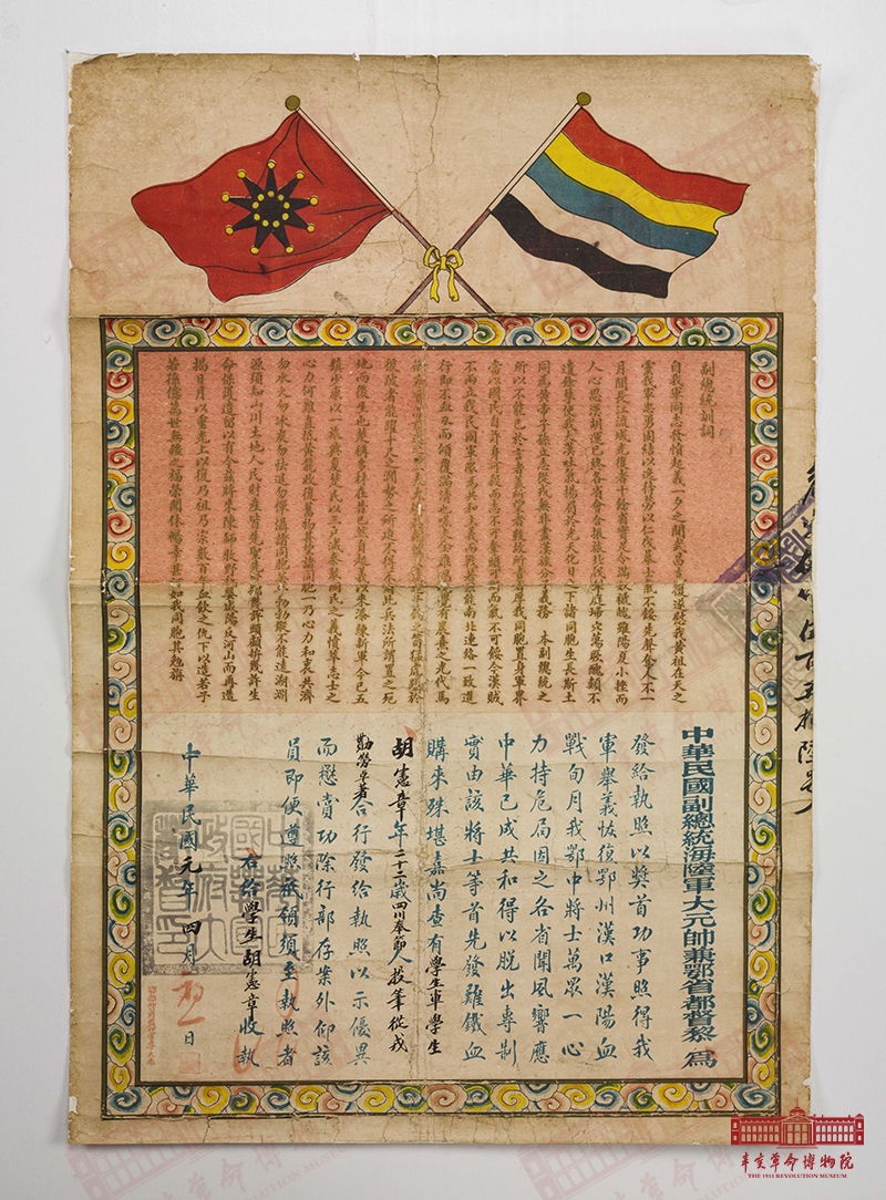 名稱:黎元洪副總統(tǒng)頒給胡憲章的首功執(zhí)照