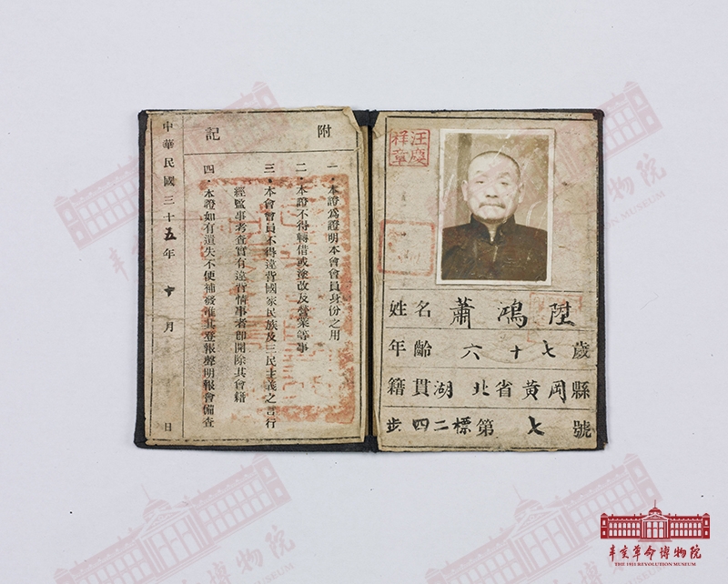 名稱:蕭鴻升的辛亥首義同志會會員證書